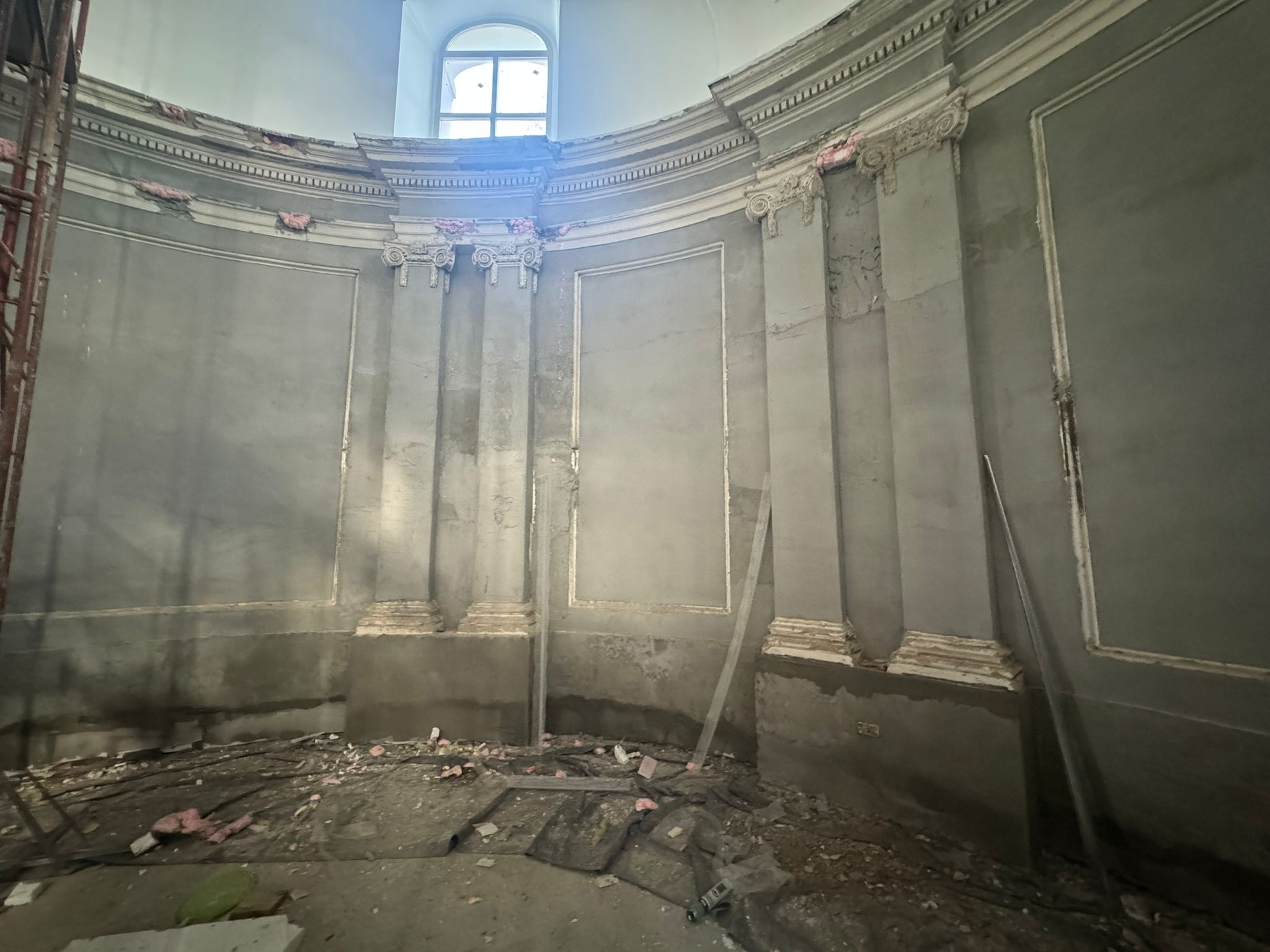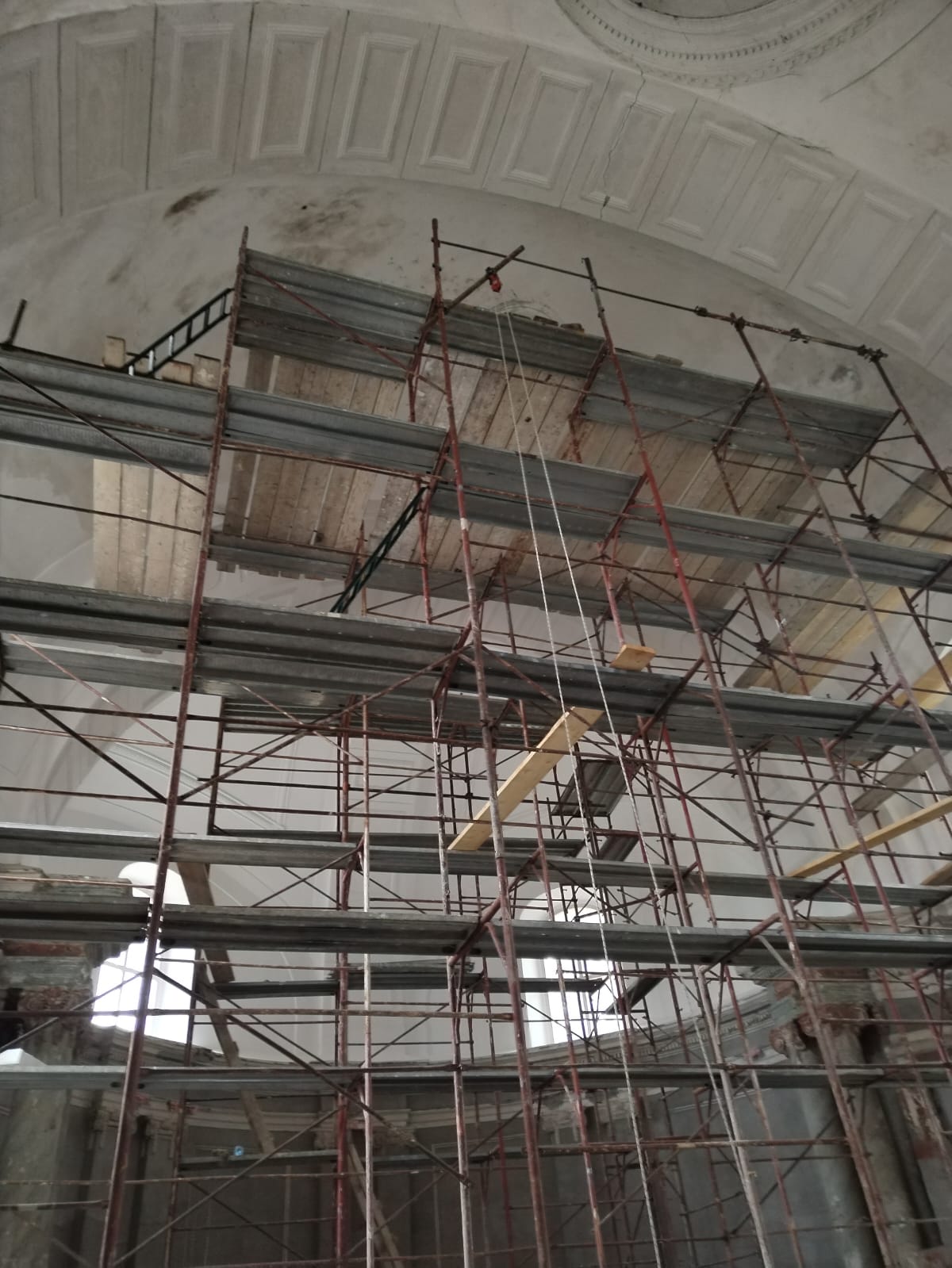Am 22.7.2025 konnte endlich der erste Bauabschnitt der Innenrenovierung beginnen. Bis zum 14.12.2025 wurden Bodenarbeiten, Elektroarbeiten und Maurer-, Gipser und Malerarbeiten im Bereich von Decken, Wänden und Gewölben durchgeführt.