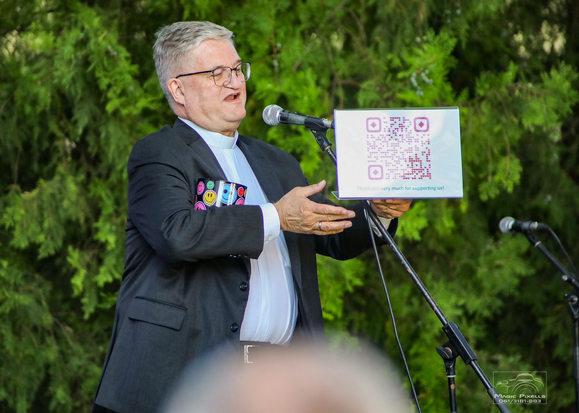 Dr. Lutz Bauer, 2. Vorsitzender im Förderverein, warb unter den Gästen um eine Spende für unser Projekt.