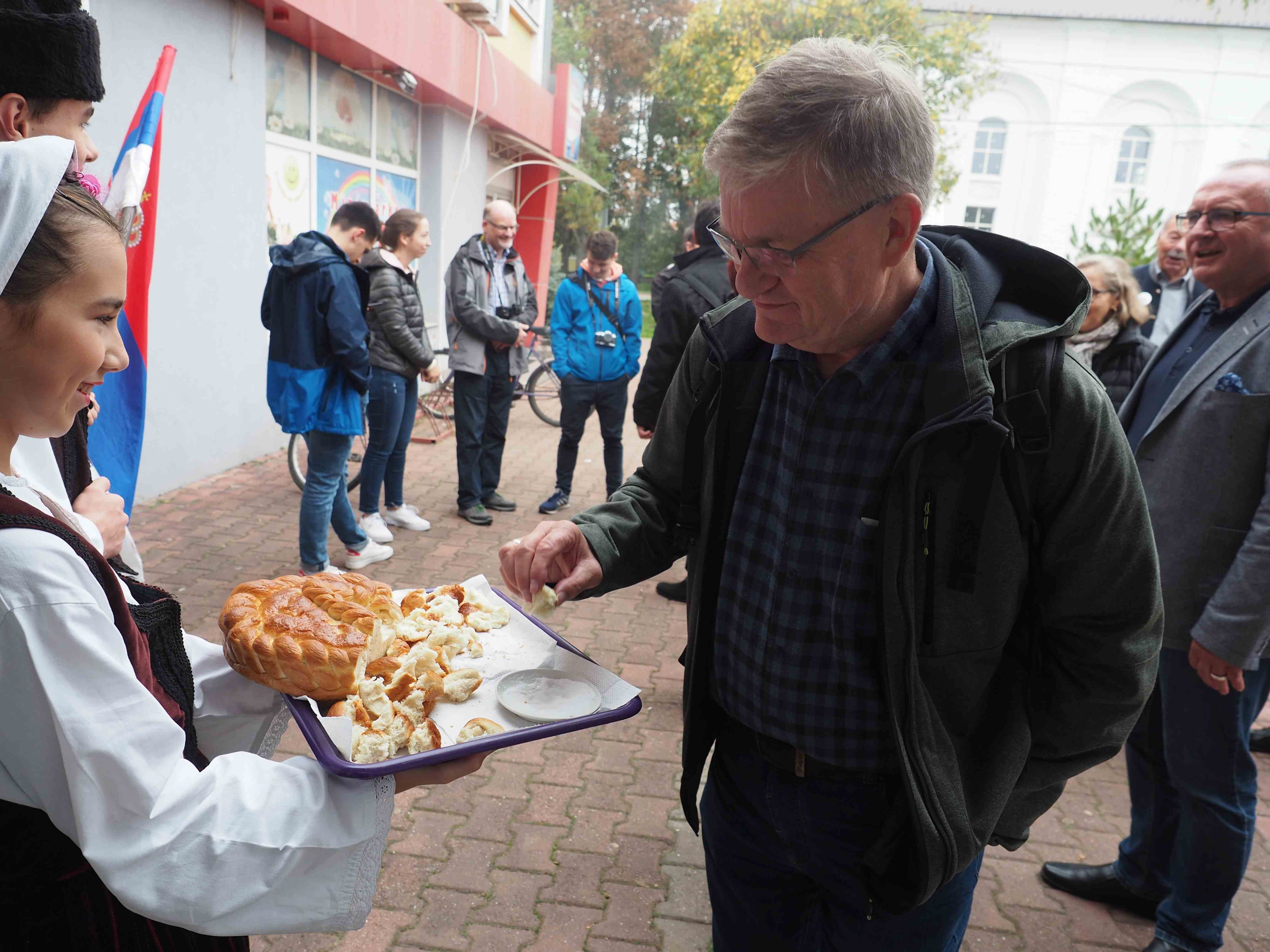 Die Delgationen der Stadt Kirchheim/Teck, dem Förderverein Kirchheim Petrovac und der Heimatortsgemeinschaft Bulkes werden von Ortsbürgermeister Dušan Erak begrüßt