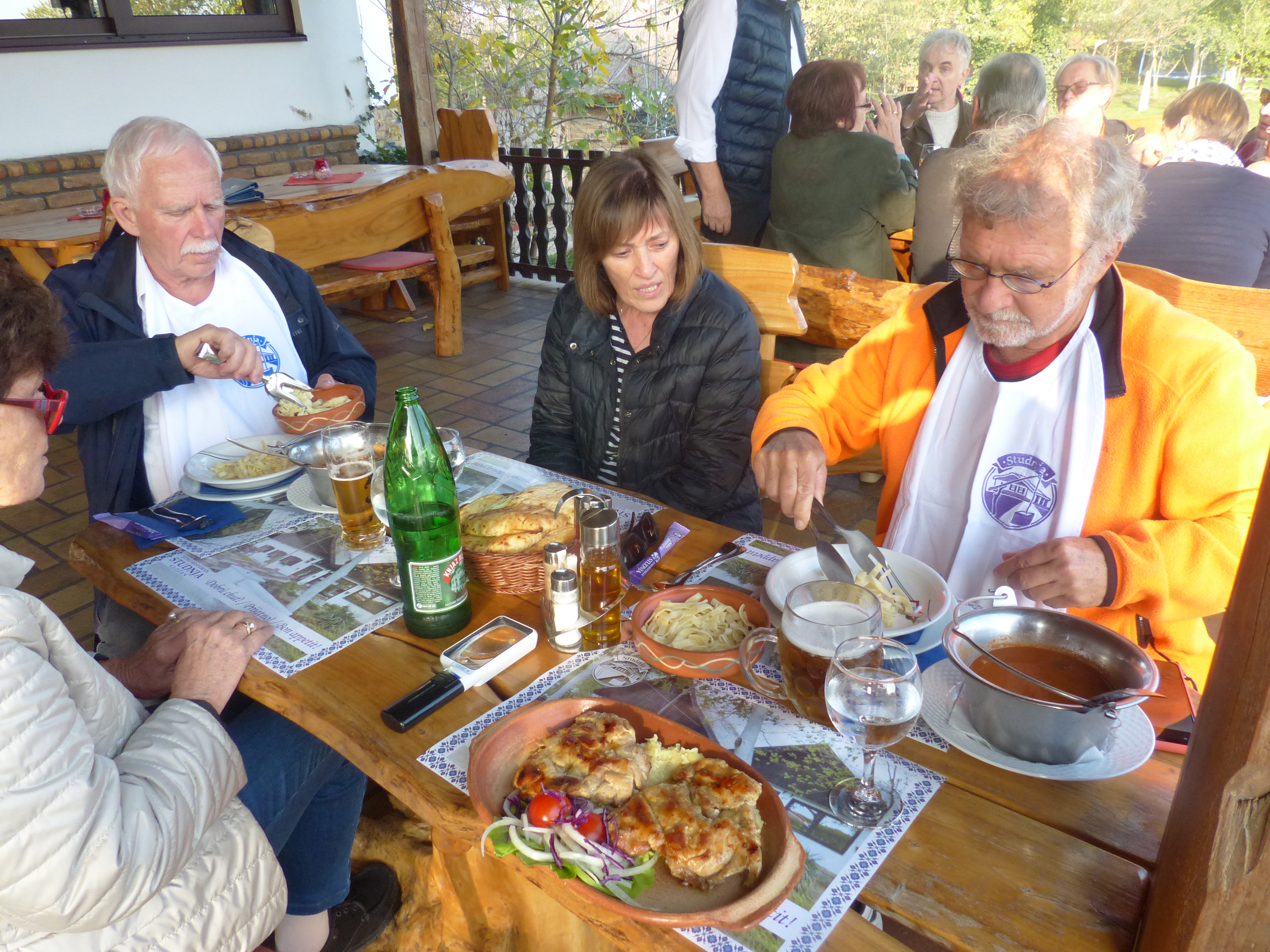 Bei einem gemeinsamen Mittagessen, guten Gesprächen und lustigen Einlagen konnten wir unsere Freundschaft festigen. Für den Genuss einer regionalen zünftigen Gulaschsuppe ist ein besonderes Kleidungsstück unerlässlich.