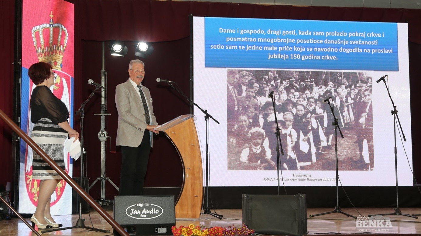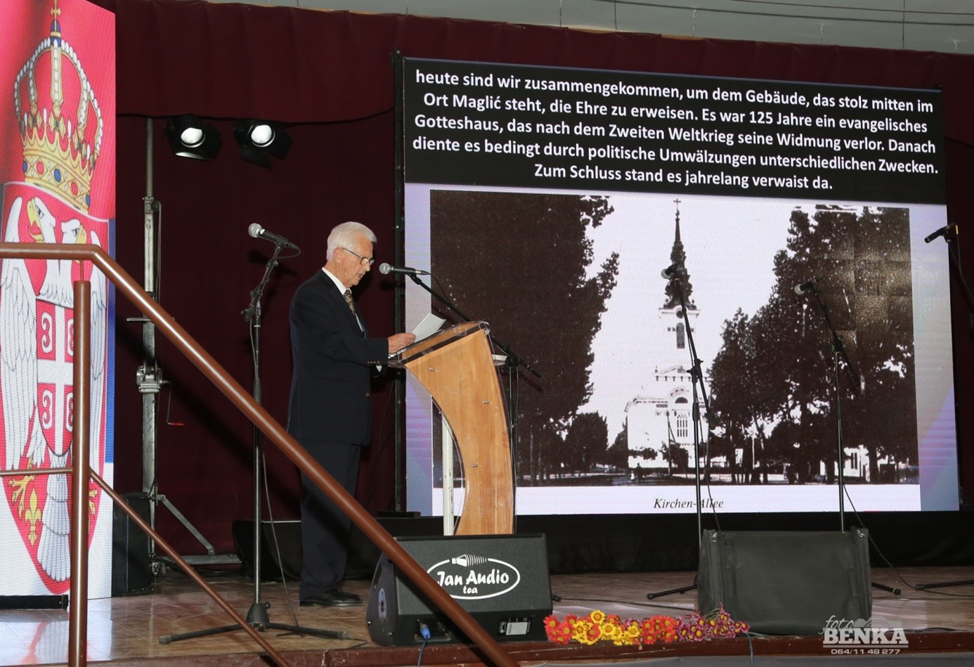 der Vorsitzenden des Vereins „Kulturzentrum Bulkes-Maglić“ Violeta Cvetković, der Bürgermeisterin von Bački Petrovac Jasna Sproh, des Oberbürgermeisters der Stadt Kirchheim unter Teck Dr. Pascal Bader, gab es einen Festvortrag von Willi Bauderer zur Geschichte der Kirche in Bulkes-Maglić in serbischer Sprache (durch perfekte Technik wurde die deutsche Übersetzung projiziert). Dieser Vortrag stieß gerade auch bei den heutigen Bewohnern des Ortes auf großes Interesse.