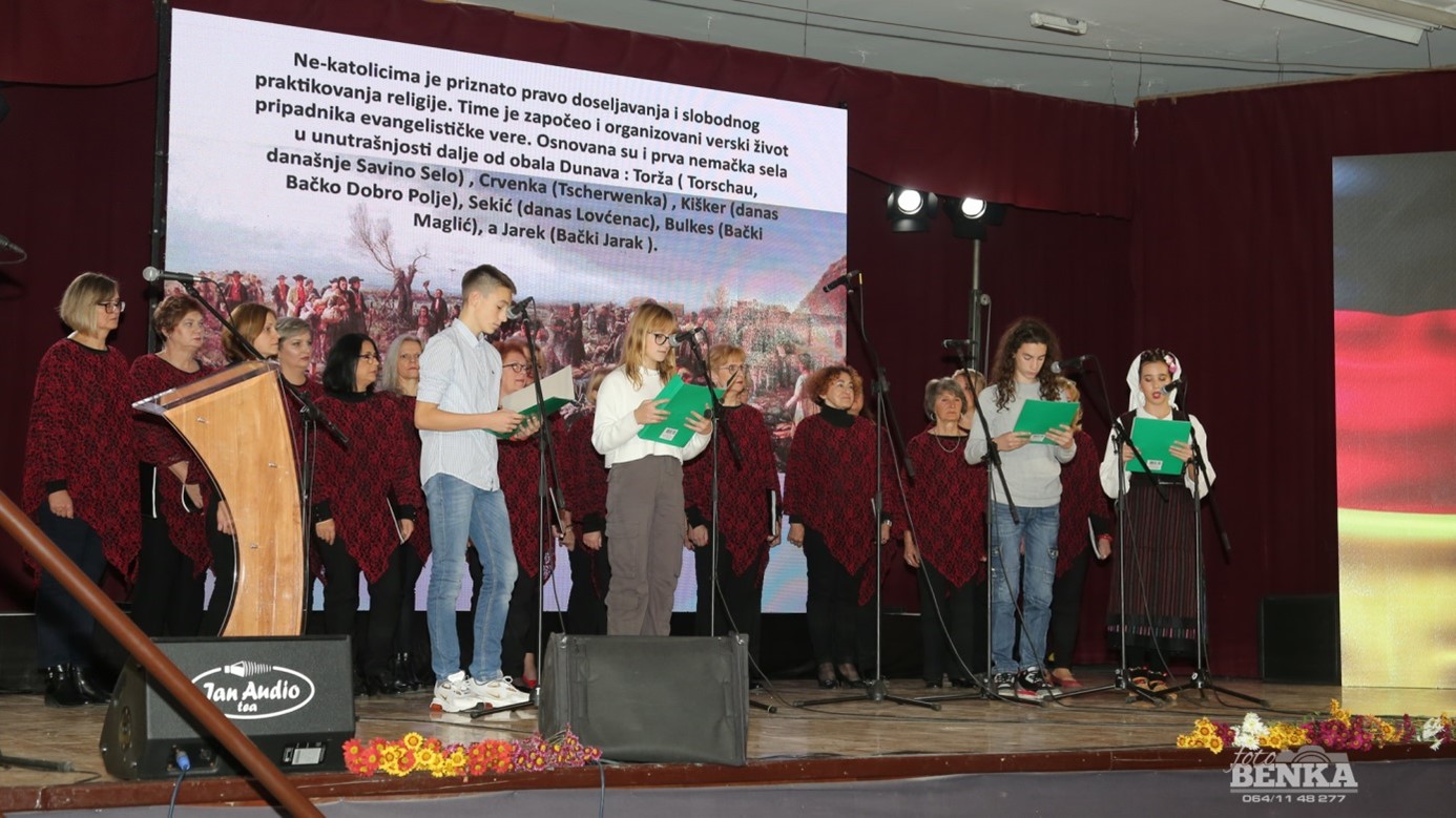 Am Abend dann ein Fest, das alle Sinne ansprach und ein unvergessliches Erlebnis bleiben wird. Nach den beiden Nationalhymnen trugen Kinder der 7. und 8. Klasse der Grundschule in Maglić die Geschichte des Ortes und seiner donauschwäbischen Bewohner in deutscher Sprache vor.