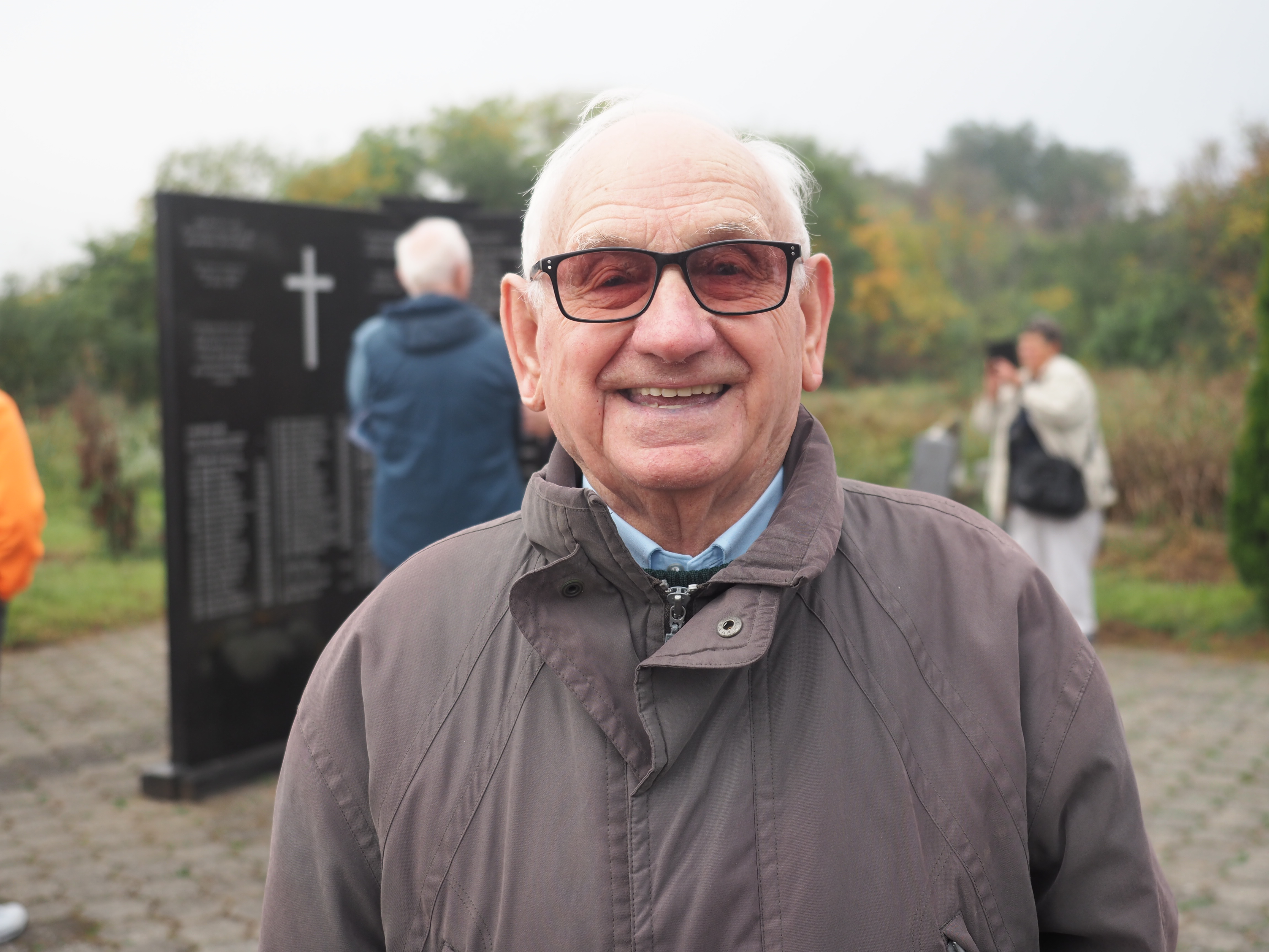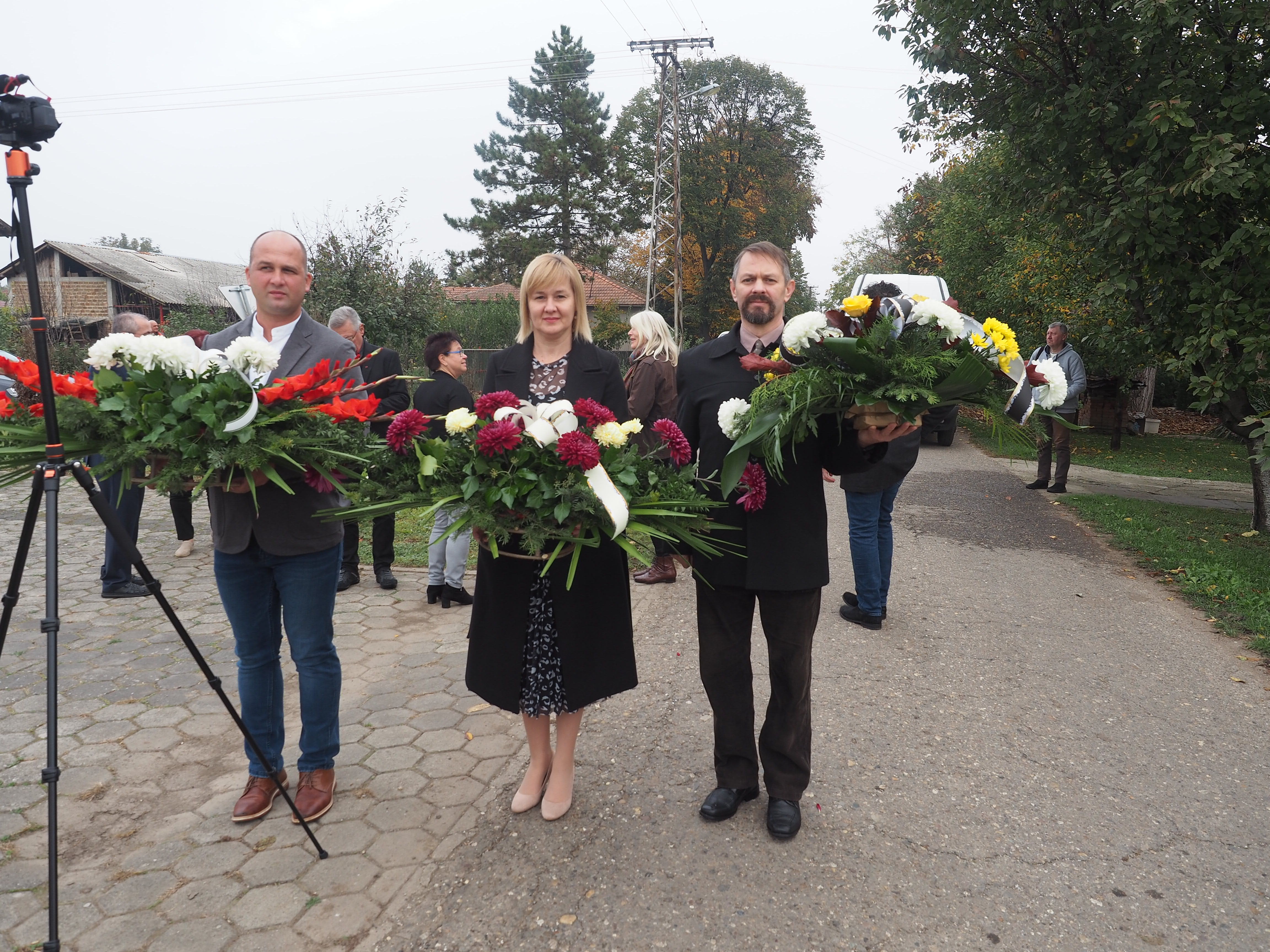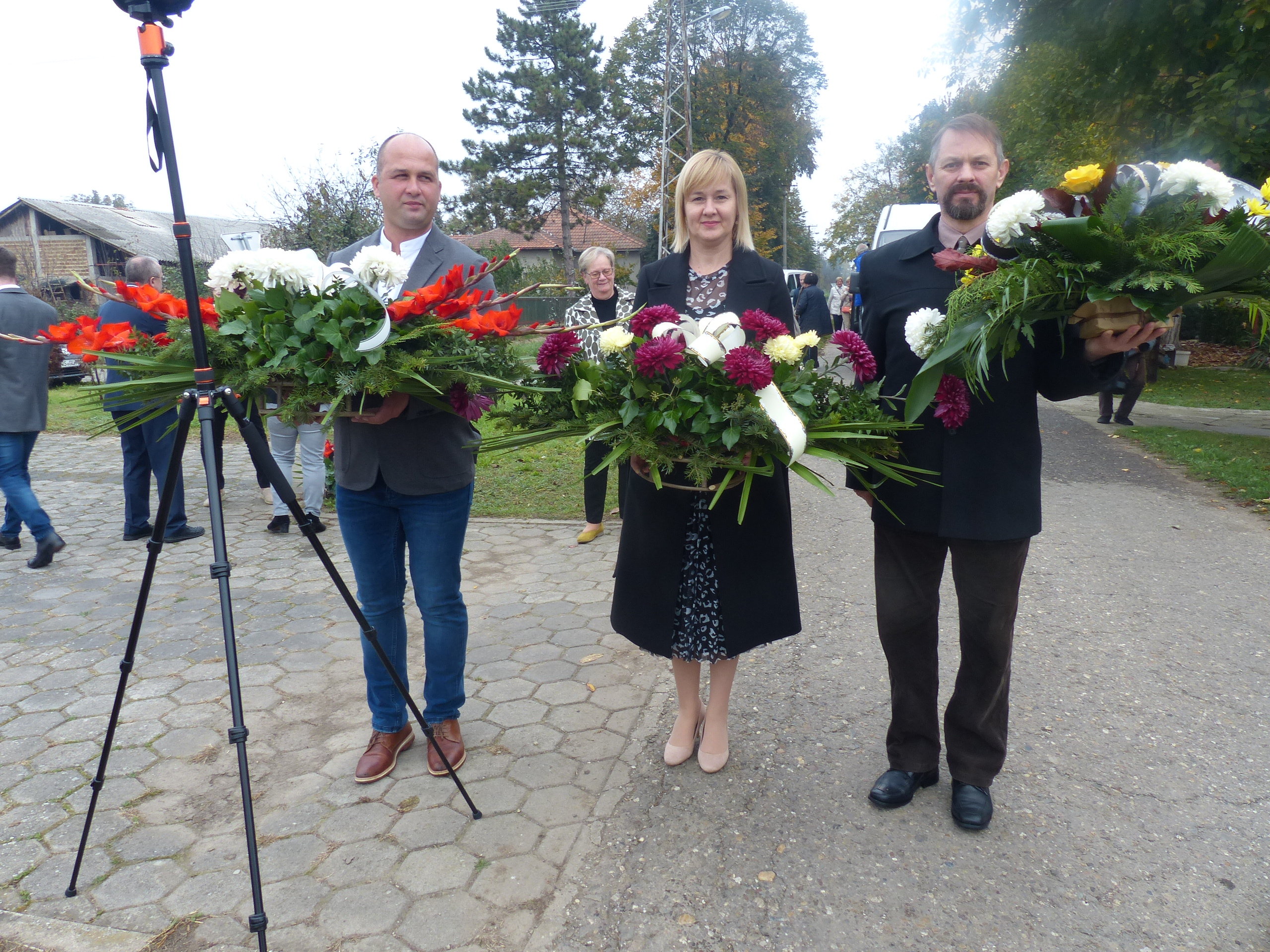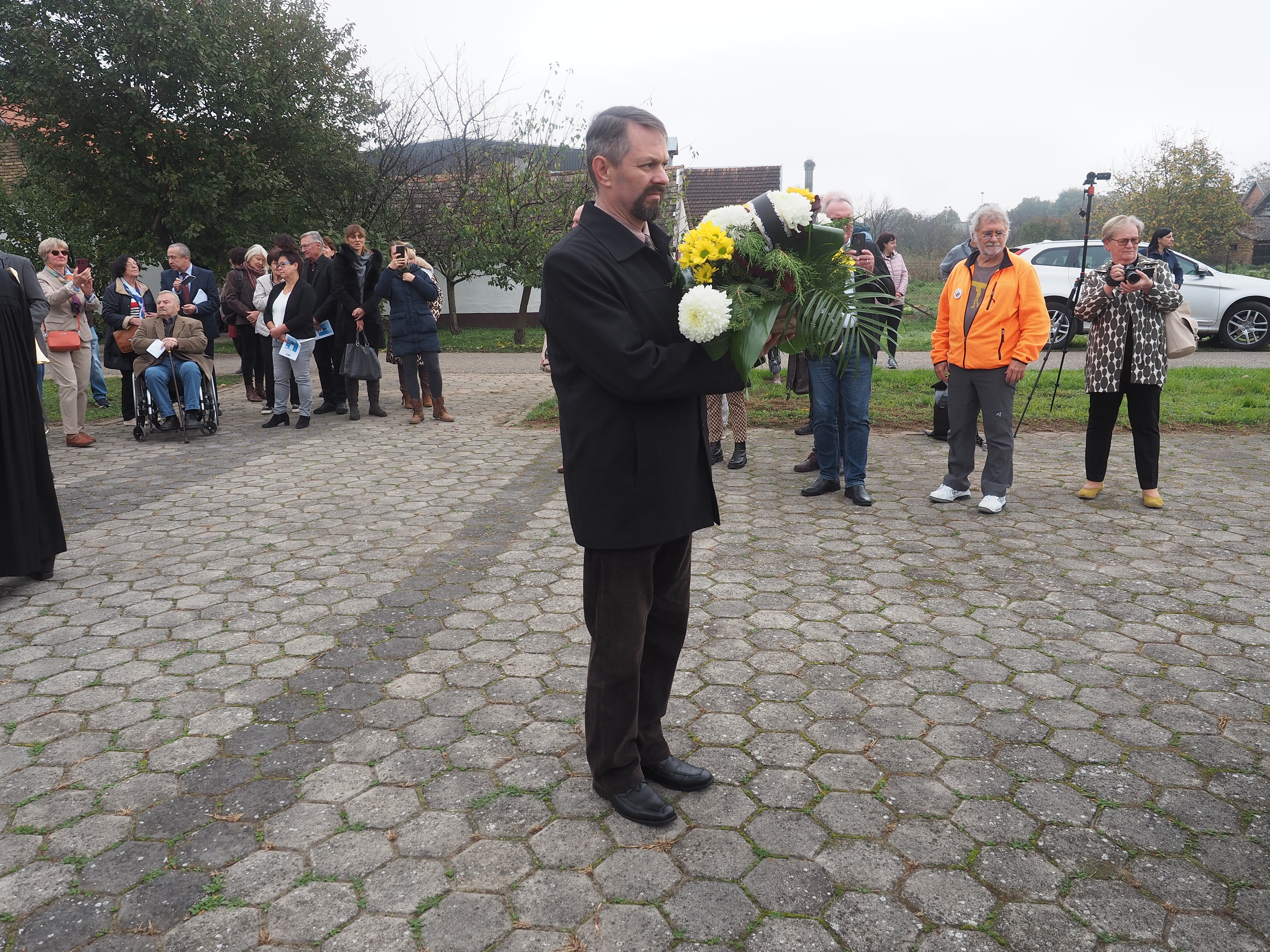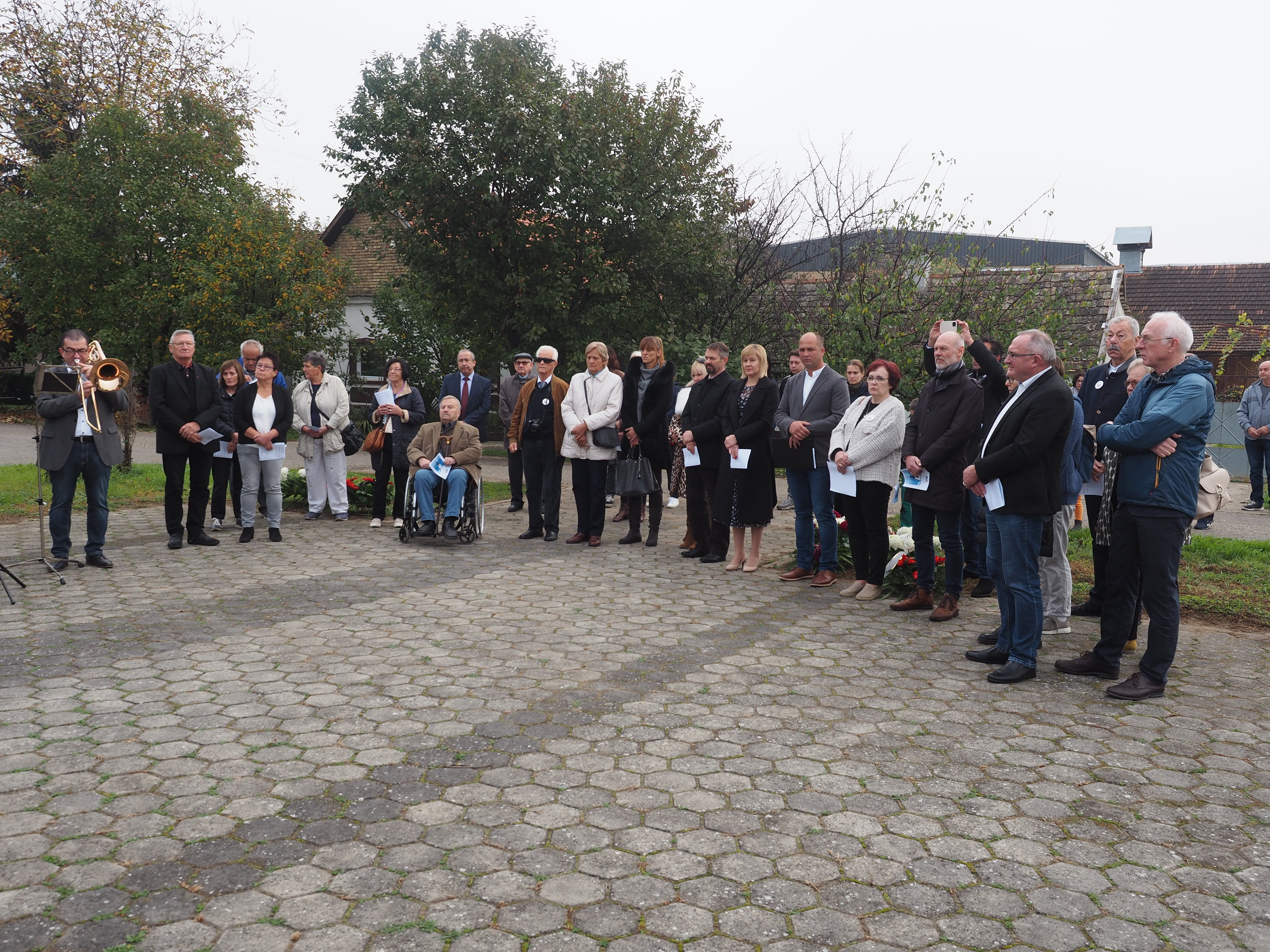 Herr Pfarrer Dr. Lutz Bauer leitet den Gottesdienst an den 2008 errichteten Gedenksteinen für die in Jarek und anderen Lagern verstorbenen Einwohnern von Bulkes