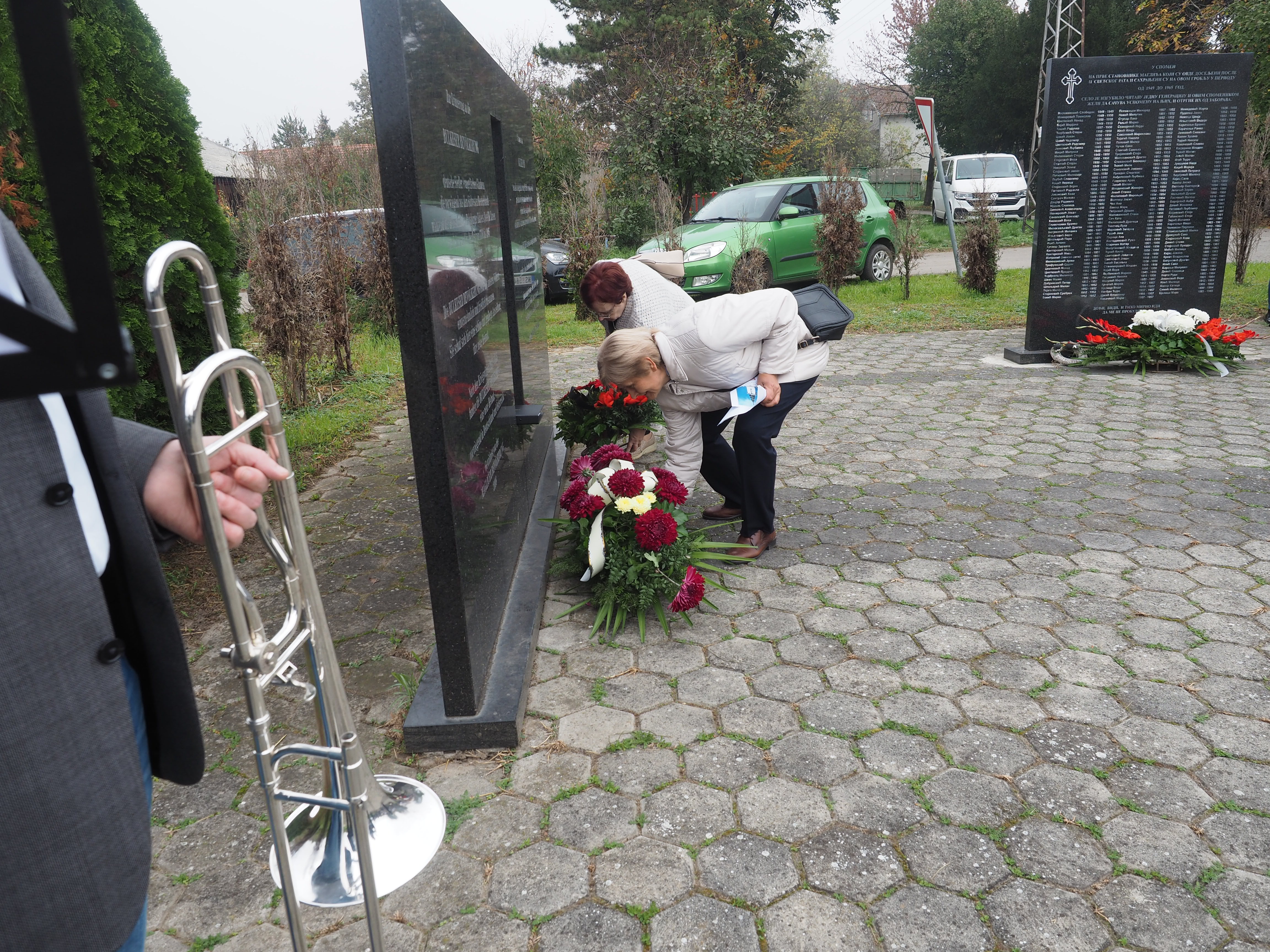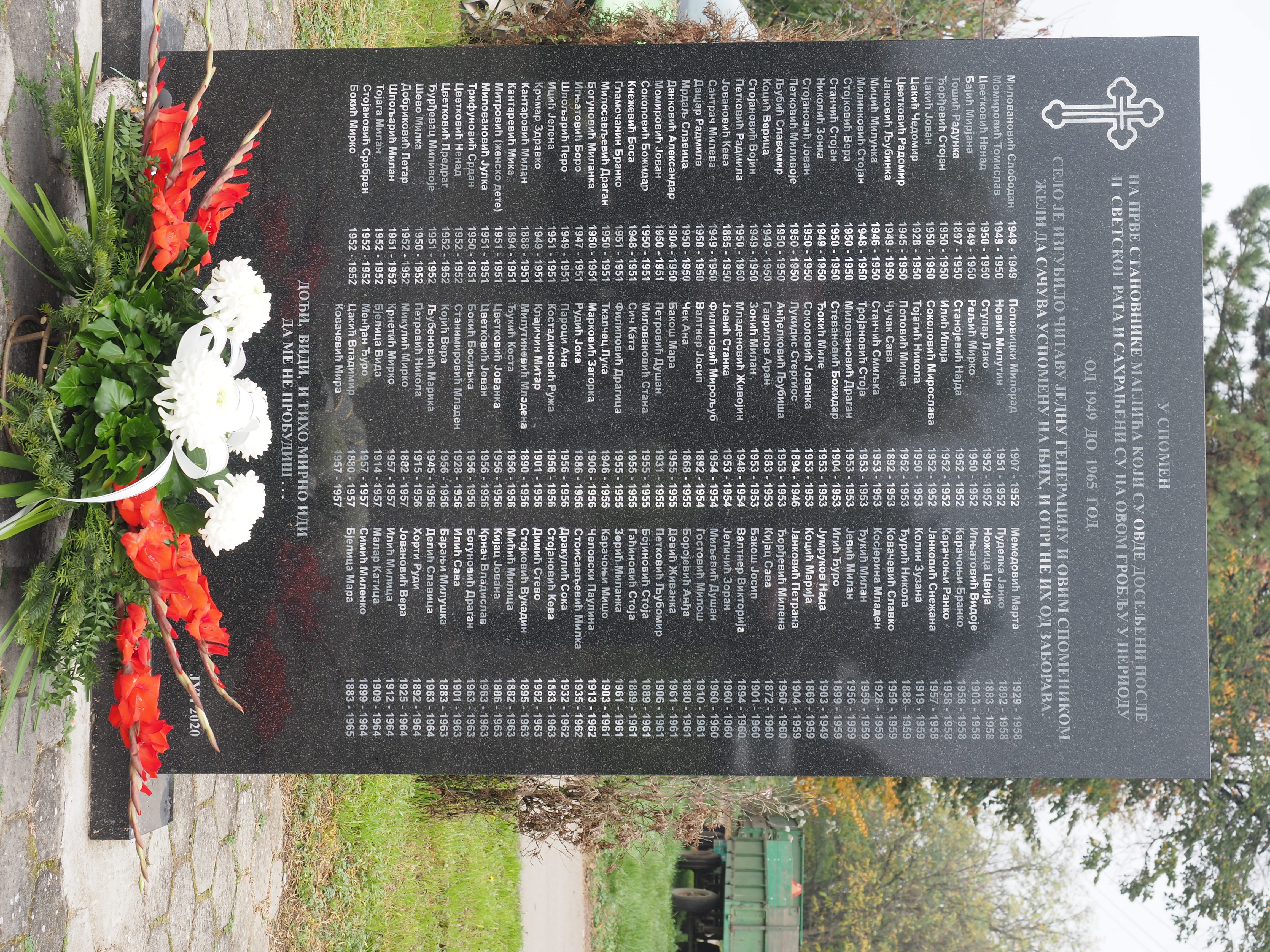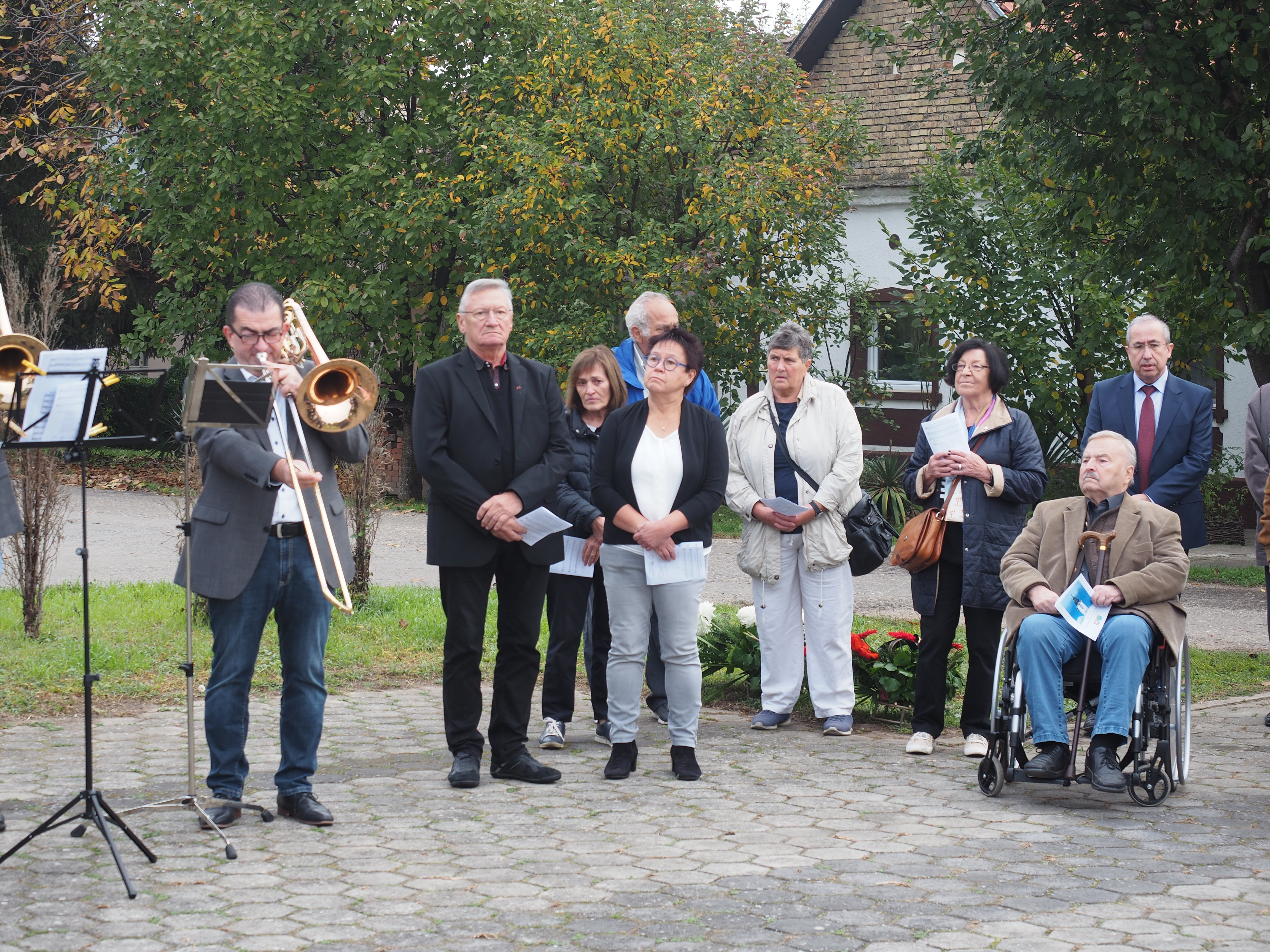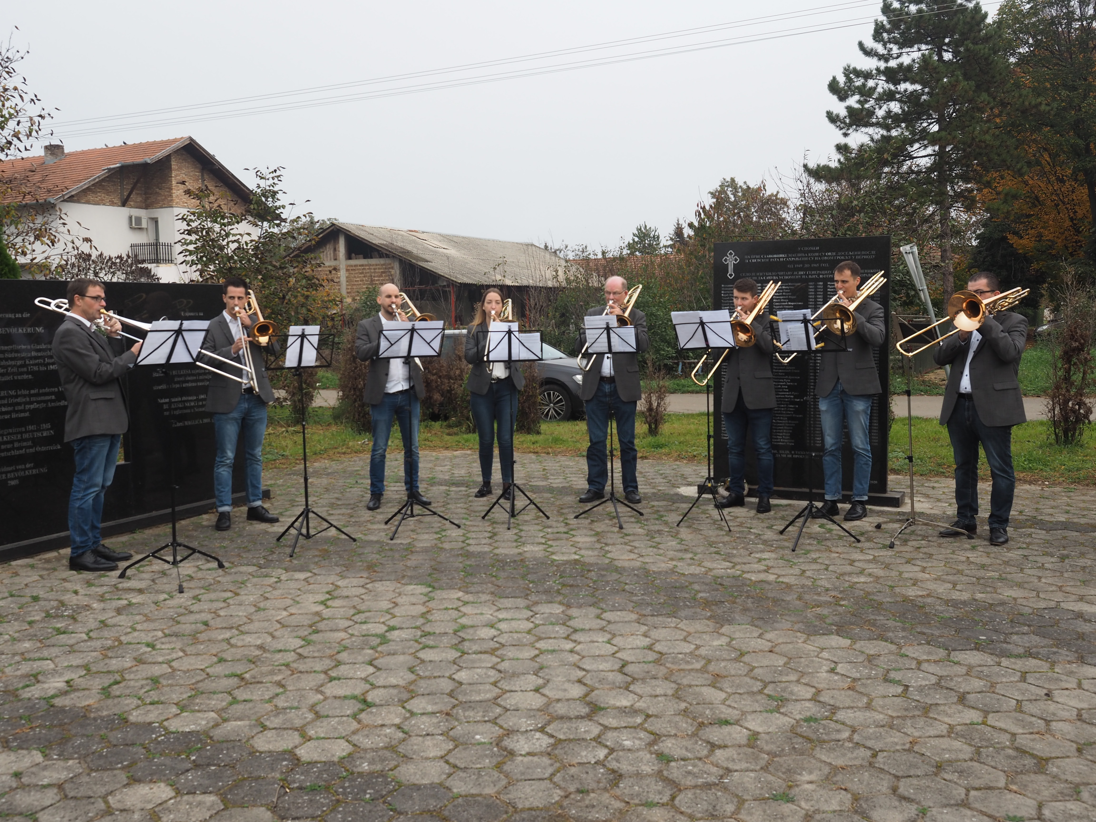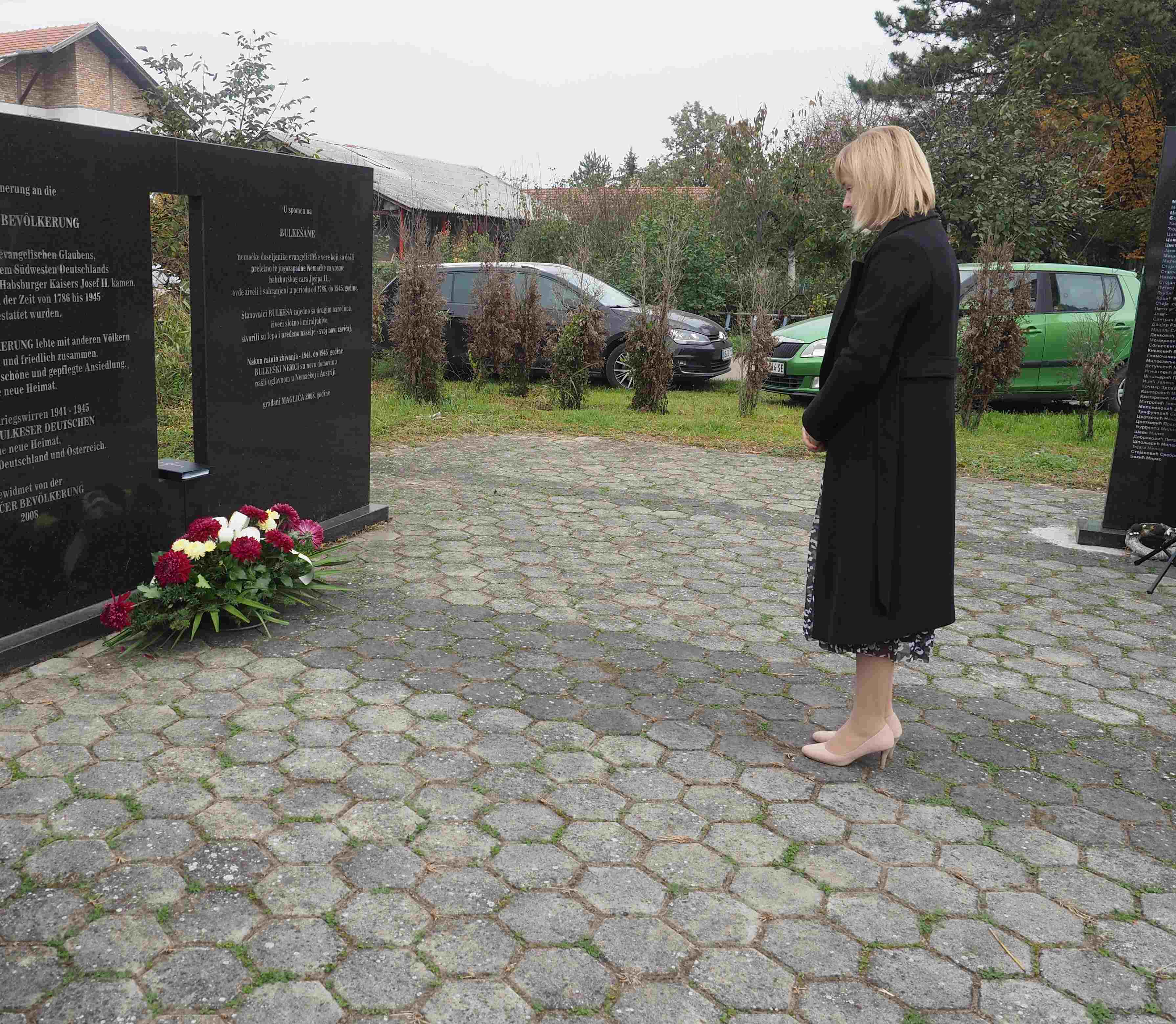 Herr Pfarrer Dr. Lutz Bauer leitet den Gottesdienst an den 2008 errichteten Gedenksteinen für die in Jarek und anderen Lagern verstorbenen Einwohnern von Bulkes