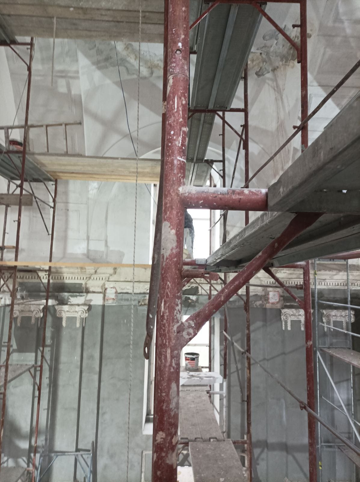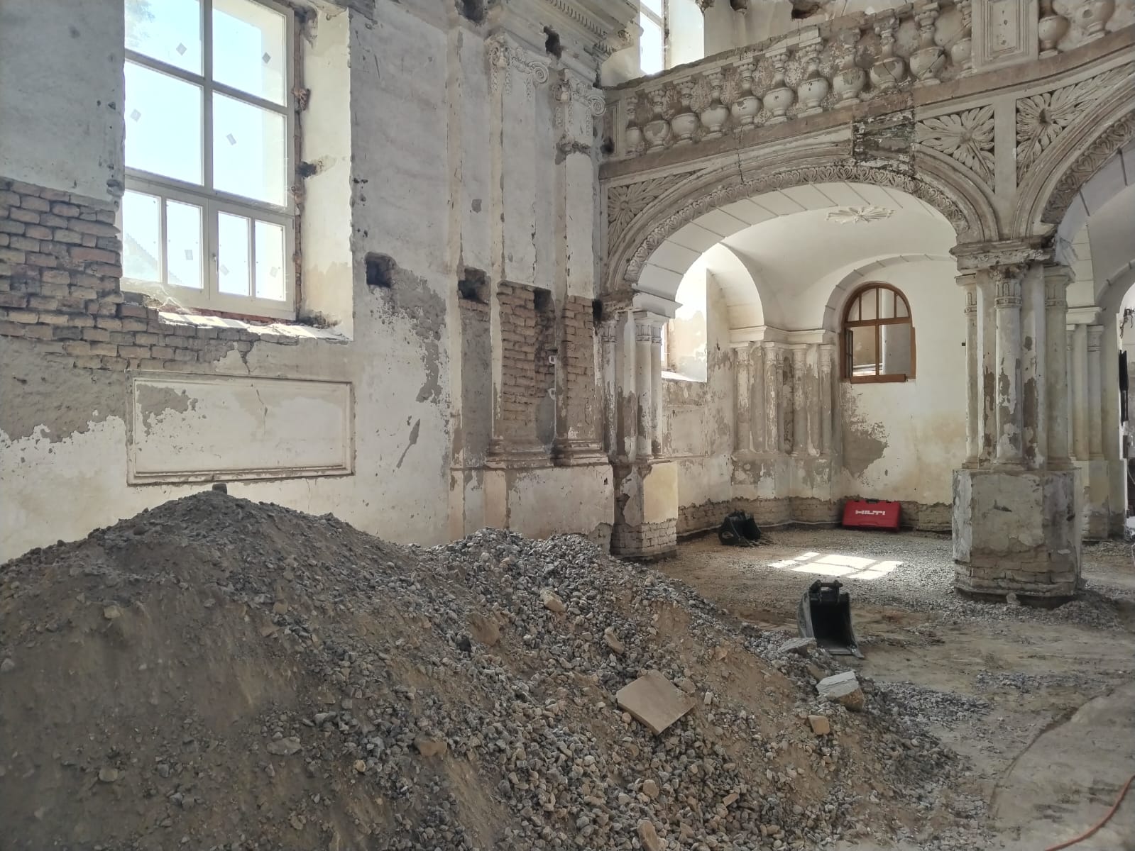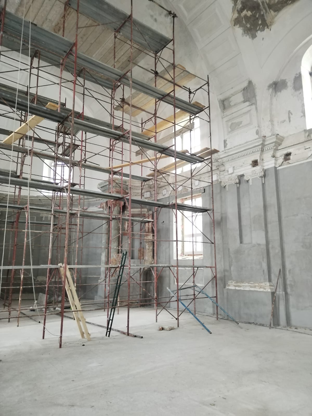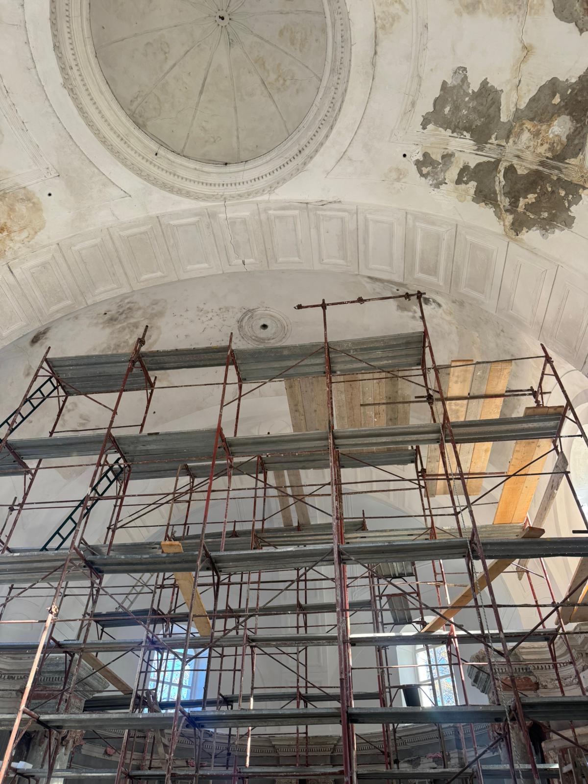 Am 22.7.2025 konnte endlich der erste Bauabschnitt der Innenrenovierung beginnen. Bis zum 14.12.2025 wurden Bodenarbeiten, Elektroarbeiten und Maurer-, Gipser und Malerarbeiten im Bereich von Decken, Wänden und Gewölben durchgeführt.
