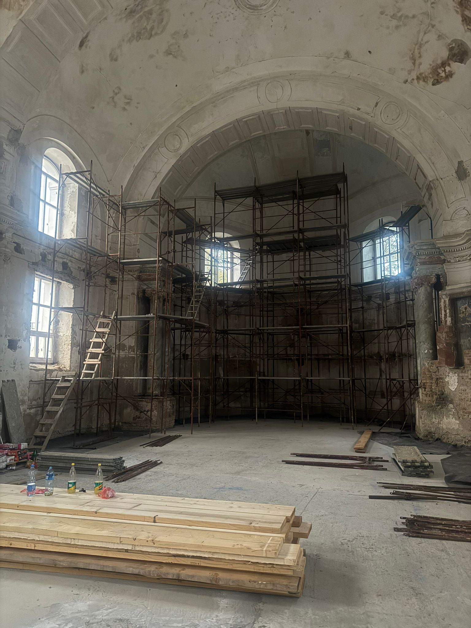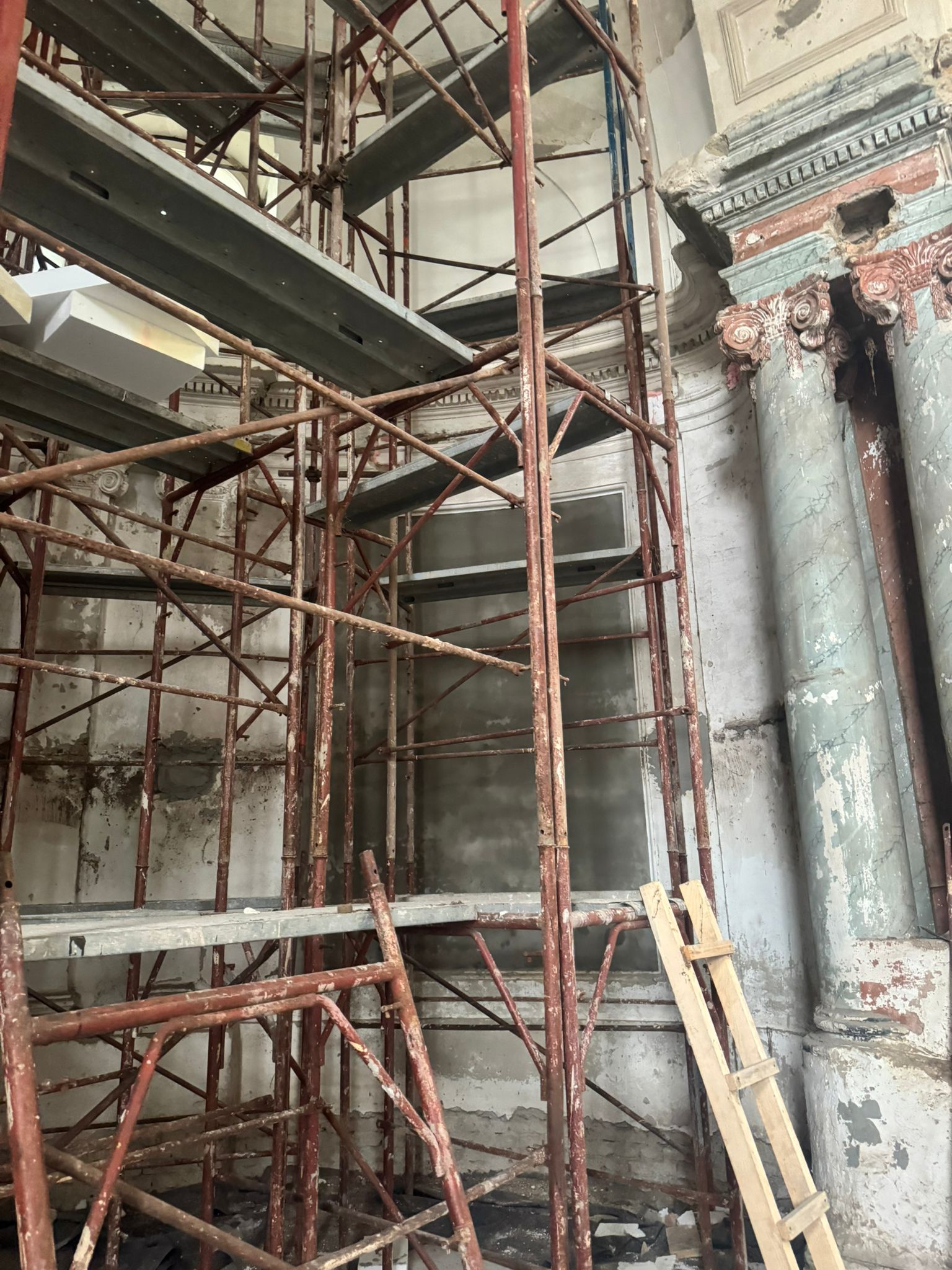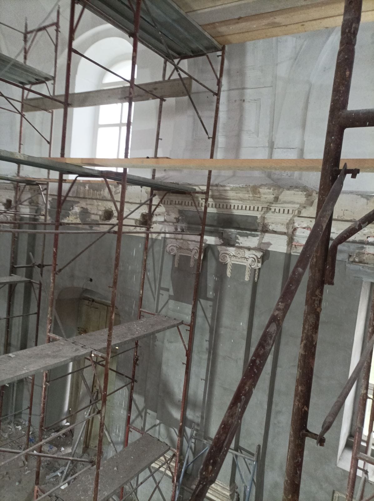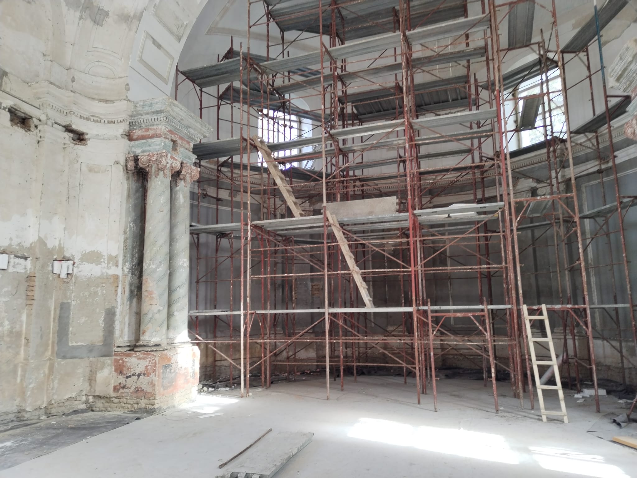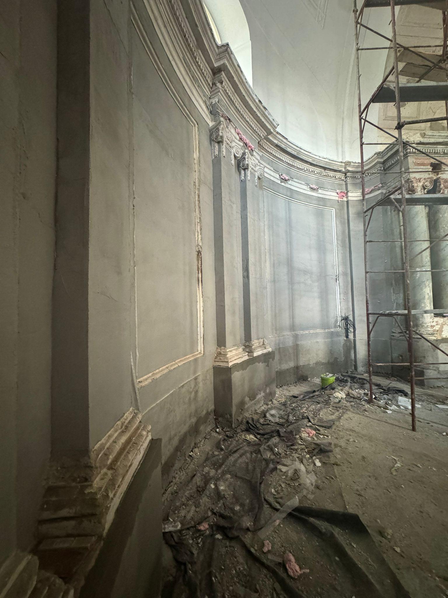 Am 22.7.2025 konnte endlich der erste Bauabschnitt der Innenrenovierung beginnen. Bis zum 14.12.2025 wurden Bodenarbeiten, Elektroarbeiten und Maurer-, Gipser und Malerarbeiten im Bereich von Decken, Wänden und Gewölben durchgeführt.