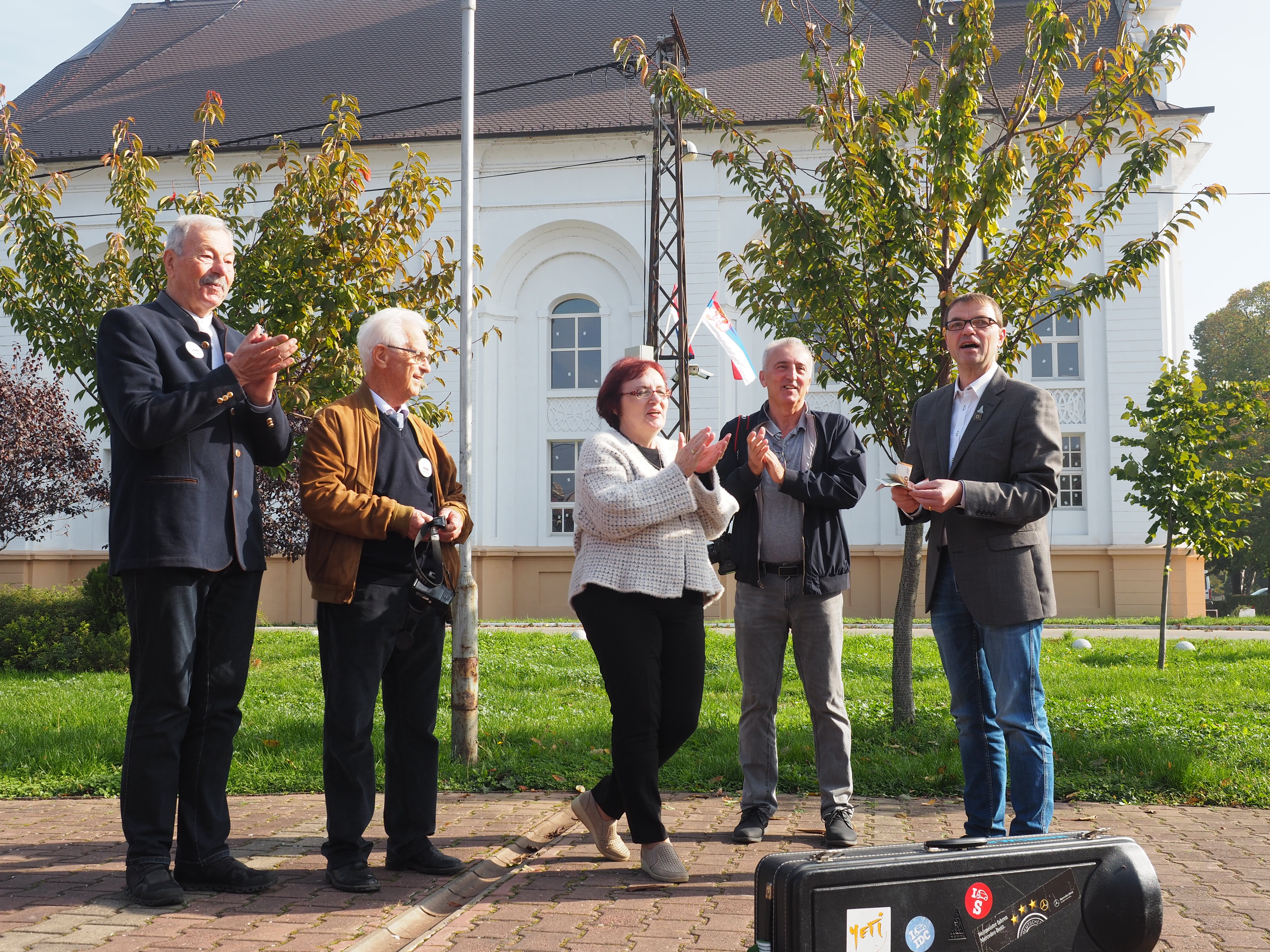 Straßenmusiker haben immer ein passendes Spendenbehältnis. Den Lohn der Arbeit erhielt der Vorstand des Maglićer Kulturvereins für ihre Vereinsarbeit